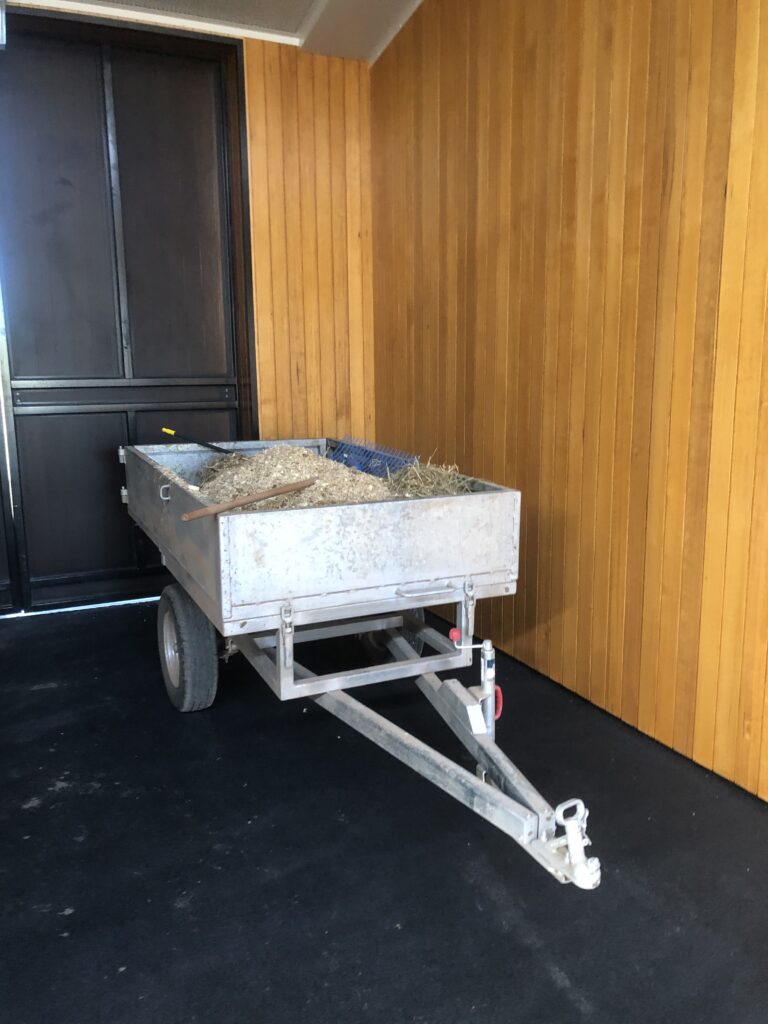 My first reaction was I’m not paying that for a trailer!!! When it was very wet the other week we started emptying the stables and filling with fresh sawdust. Our stables are 5 metres x 5 metres so they are a big box. It took 3 trailers to fill and the girls just couldn’t stop raving about the tipper – they just loved it. They could back straight to where they wanted in the stable and tip. The cast iron castor wheels on the back of the tipper tray are a great idea as they make it so easy to pull forward and the tray doesn’t scrape on the concrete. Then we simply just had to level the box.